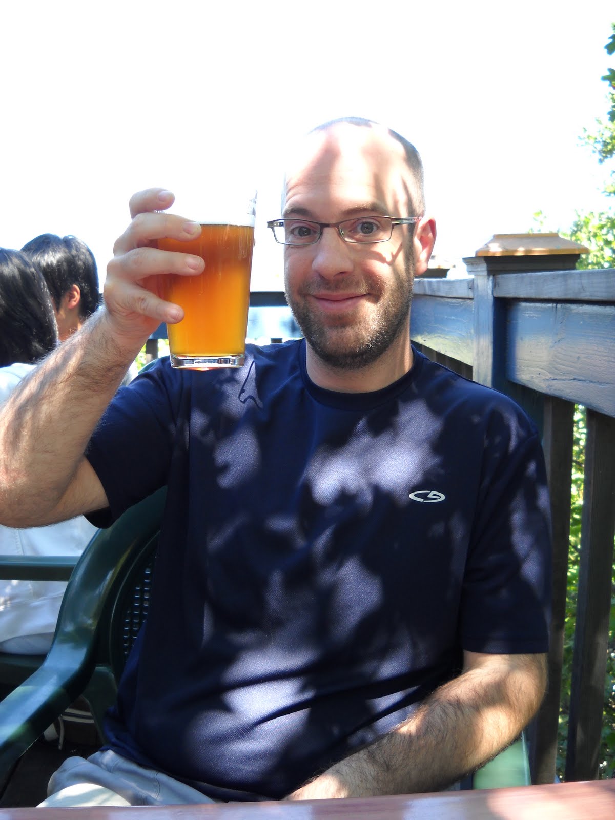We skipped over to the White Salmon River (amazing views of Mt. Adams!), following it down through the town of White Salmon, then crossed the Columbia River to Hood River where we had lunch at Big Horse Brewery. Because it was Chris’ birthday, he had two beers and I let him eat most of my corn on the cob!