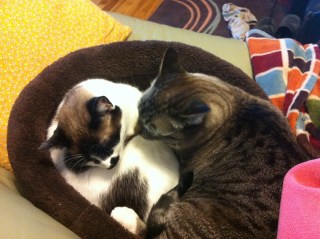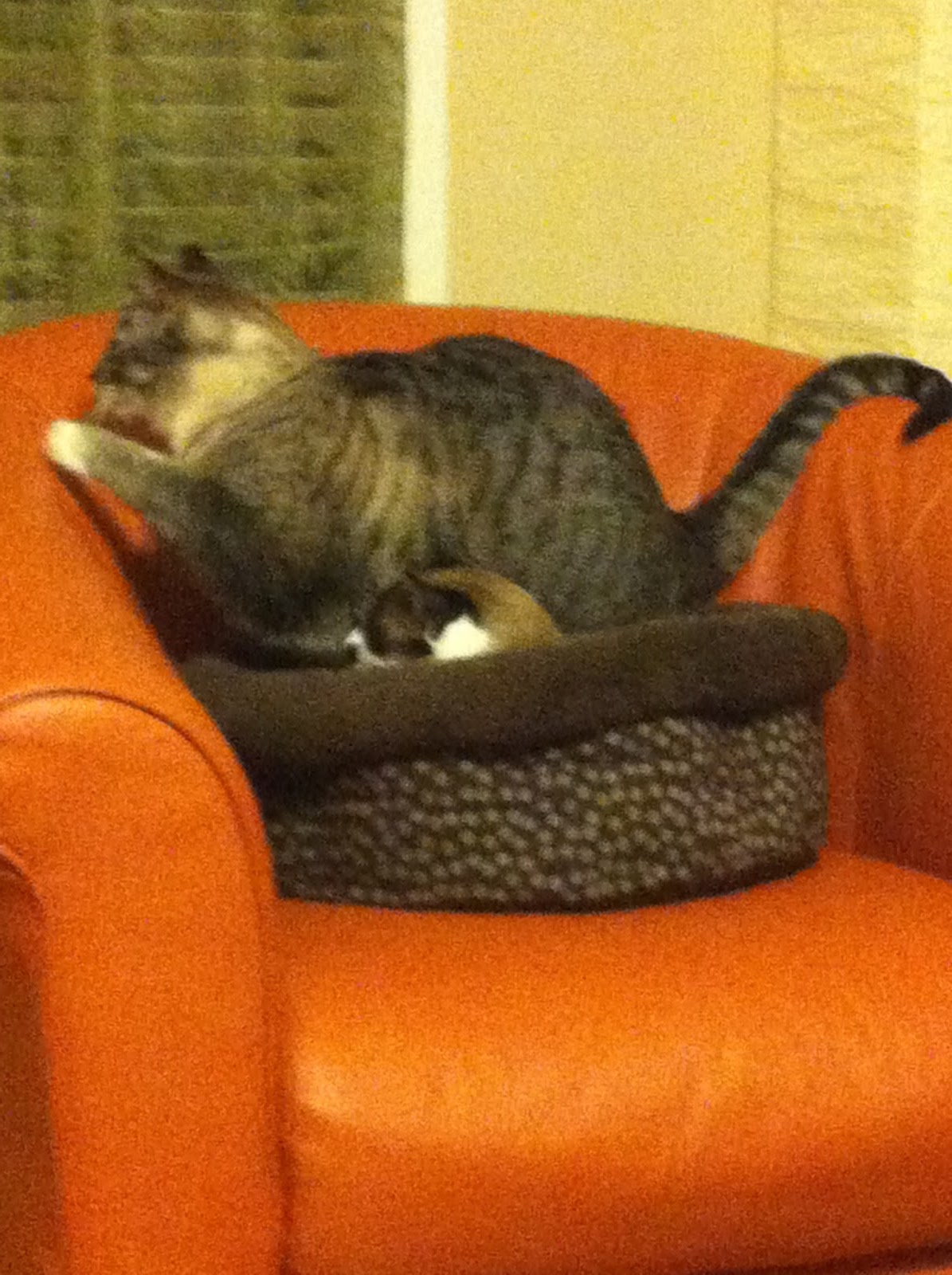 And when it comes to sharing, Samantha needs to recognize that it’s not her cat bed. Well, it’s not Oliver’s either, and he needs to recognize that there is not room for two cats, especially if one of them is Oliver-sized. Poor Samantha!