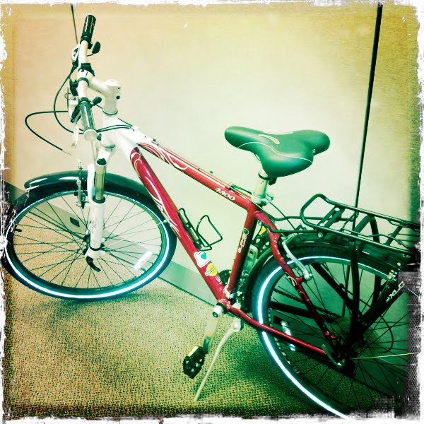 I’ve gotten in a little bit of a rut around exercise (see my recent posts on roller derby, any of them) so I decided to start biking to work again (which may just help me with endurance and my 27-in-5 goals). I pulled my mountain bike out of the shed, dusted it off and tested the brakes when – SNAPPO! – one of the brake cables gave out. One of the brake lines went slack and I couldn’t see how to fix it, so I said “eff this…I’m getting a new bike”! Actually, I’d been wanting a new bike for a while because my mountain bike wasn’t great for biking to work – it’s pretty heavy, and just slow and cumbersome. So after some advice and browsing, I came home from The Bike Gallery with this beauty, a brand new Trek Allant!