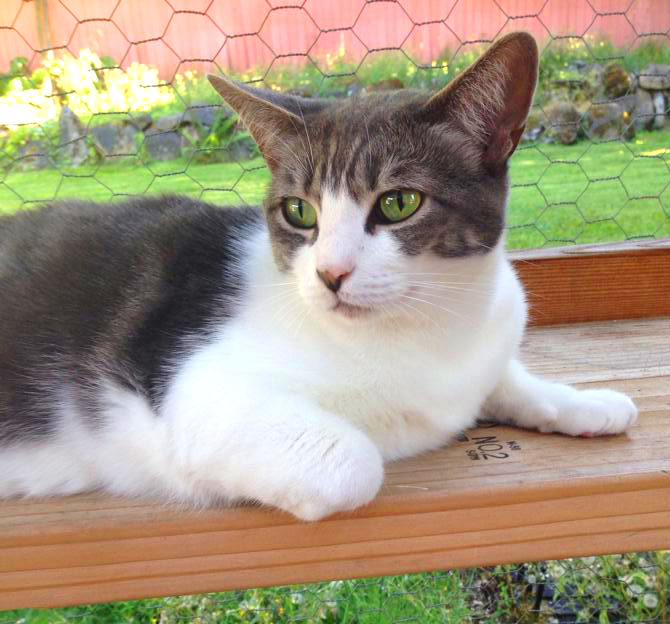 However, I never knew this version of Locket. I started volunteering for Furry Friends in April 2014. She was not one of the first cats I got to know, remaining in the background, just observing me as I did my chores. I’d see her walking around the house or lounging in the catio (she LOVES watching the world go by from the catio!) but it was a while before she specifically started coming to me to investigate who I was. She would let me give her some brief pets on her head and around her ears, slowly getting to know me over the weeks.