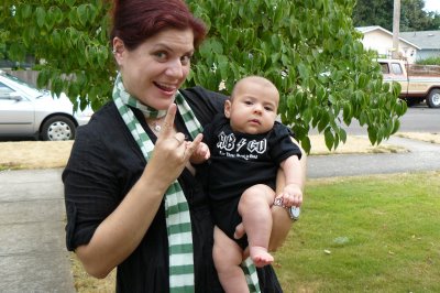 But you’re probably wondering where the bacon comes in, right? After the show, Chris and I were almost home when we decided to turn back around and head over to Voodoo Doughnut, a Portland institution that I had never been to before. We had to pay $8 for parking (“but the sign says $2 for the first half hour!” “Yes, but that will still be $8, Sir”) and wait in line for about a half hour, but we finally got our donuts and left post haste so that we could devour them in the privacy of my home. Oh – question: do they make hair nets for facial hair? Just wondering…